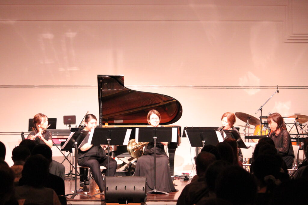 演奏⇒フルート:高橋悠香先生、トランペット:高本智沙先生、クラリネット:三井明日見先生、ホルン:綛谷真伊子先生、バリトンサックス:Satsuki先生