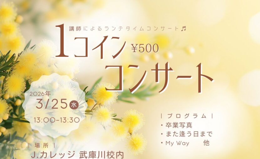 今月のワンコインコンサートは、3/25(水)に開催が決定いたしました✨