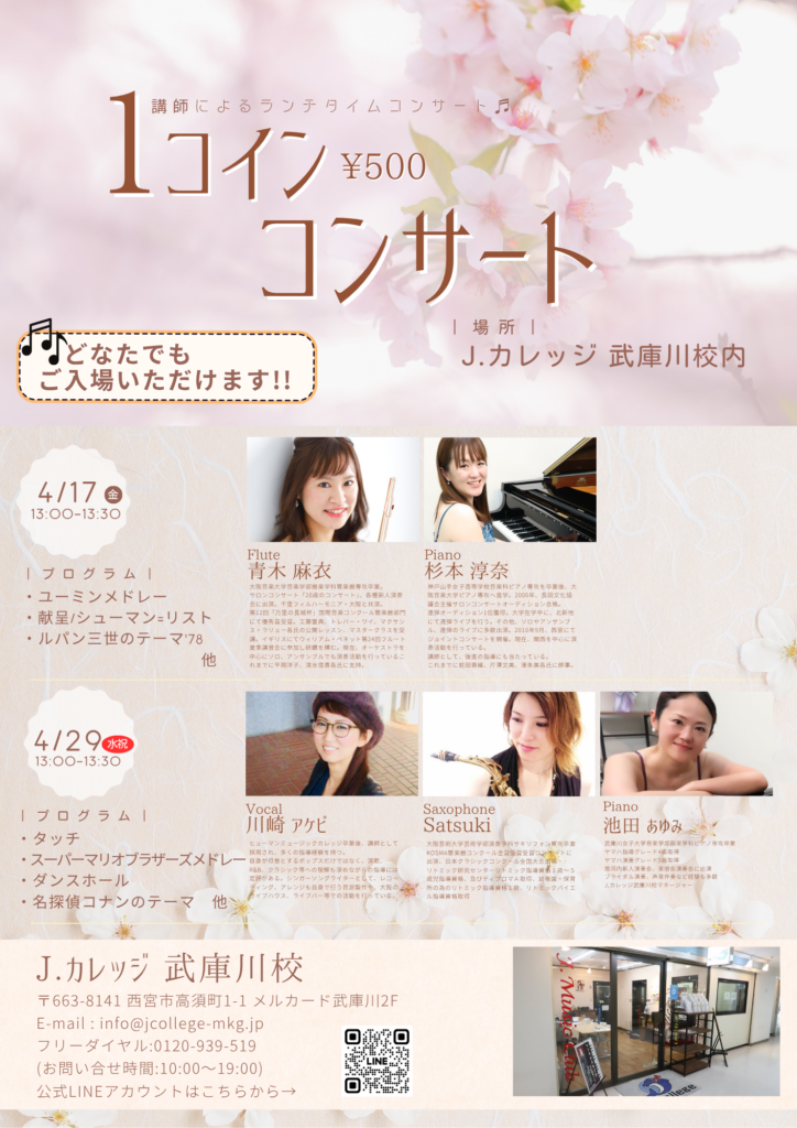そんな新年度の4月は、ワンコインコンサート2本立てとなっております♪